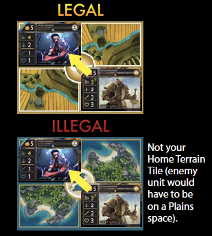 Units also can attack enemies diagonally (melee attacks), but ONLY if the unit they are attacking is occupying a space that is on a home terrain tile of the attacking unit. It doesn’t matter the space the attacking unit current occupies, but rather the space of the attack target.