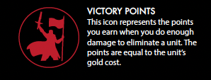 VICTORY POINTS are how many points you score for eliminating enemy units, and DAMAGE is how you eliminate units during combat.