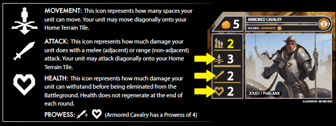 Each Unit has 4 Main Attributes. RANK, MOVEMENT, ATTACK and HEALTH.