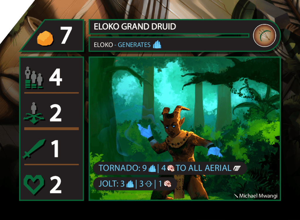 But this is about how to stop the Angel from Parada’s perspective, not the other way around. The Eloko Grand Druid easily answers that question with the Tornado spell. This is the simplest way to either ensure the Angel stays landed or just outright destroy it.