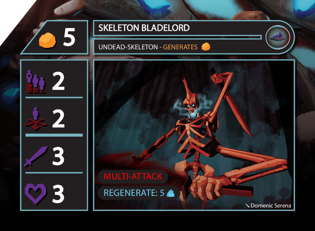 Unfortunately for the Skeleton Bladelord, occasionally it finds itself as a tough fit for the Faction. Baazaria’s control based strategy centers around Deathstorm Lich and casting multiple Deathwave spells, using high hit point units to insulate the Lich and fast units to finish off the wounded. The Skeleton Bladelord’s primary method of taking over a game involves the Bladelord using Regenerate until finding a key space to unleash a Multi-Attack– which can often take up a lot of mana-mana that could otherwise be used to help the Lich-led strategy.
